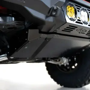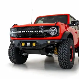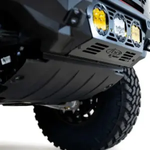The 2021-2023 Bronco ADD Bomber Front Bumper features a modern steel plate construction that is finished with a hammer black powder coat. This is accentuated by the aluminum paneling that is finished with a stain black powder coat. All of these aesthetic touches combine to make a sleek, cohesive new feature for your 2021-2023 Ford Bronco. Along with the good looks, this Bomber front bumper is highly functional. There are two reinforced clevis mounts that take 3/4″ D-ring shackles for off-road recovery functionality. You can utilize the pulling capacity for whatever situation you find yourself in out on the trails. You can even mount LED lighting on this bumper for extra visibility. The compatible LED lighting is listed at the bottom. For additional functionality, you can add on a 3/16″ vented aluminum skid plate for extra undercarriage protection and you can add on an Adaptive Cruise Control Relocation Bracket allowing you to maintain the cruise control functionality.
