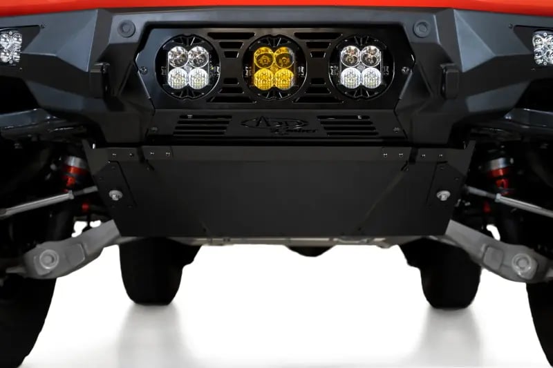 It is hard to quantify how much of an impact an aftermarket front bumper can make, especially for a build that you plan on taking off-road. Whether it’s more durability or extra features that can address other weak areas of your build, there are so many benefits to starting your new 2022-2023 Ford Bronco Raptor’s transformation with a versatile front bumper. Searching for a good one is complicated with all of the different nuances that are better or worse for specific applications. If you are looking for a front bumper that can add value in any application, then you need the 2022-2023 Bronco Raptor ADD Bomber Front Bumper. It is customizable with various lighting features and an optional skid plate. Rather than having to add any of these new features at the expense of losing factory functions, this bumper lets you retain your OEM tow hooks and parking sensors. If your Bronco Raptor has adaptive cruise control, then you can retain that function as well with the optional ACC bracket.