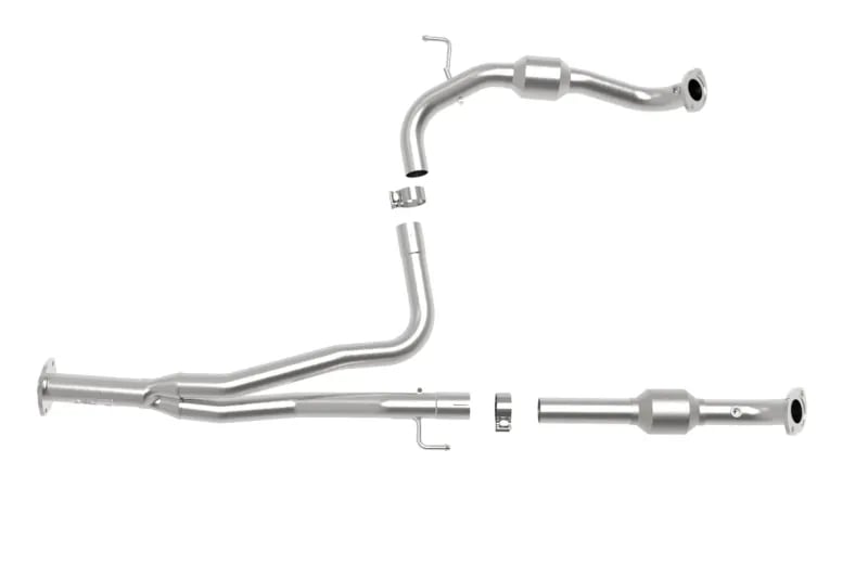 The stock exhaust system on your 2016-2023 Tacoma gets the job done. Still, if you want a mild sound and less restrictive airflow, then the aFe Power Twisted Steel Y-Pipe 2-1/4″ to 2-1/2″ Stainless Steel Exhaust System is the perfect upgrade for your aggressive Tacoma build. The exhaust system is constructed from 409 stainless steel mandrel-bent tubing for durability in any application. The Twisted Steel Y-Pipe gives your Tacoma a mild sound that is sure to turn some heads on the road. The exhaust system features dual high-flow catalytic converters, which provide an improved, less restricted airflow over the factory converters. Give your Tacoma incredible sound and improved airflow with the aFe Power Twisted Steel Y-Pipe 2-1/4″ to 2-1/2″ Stainless Steel Exhaust System.