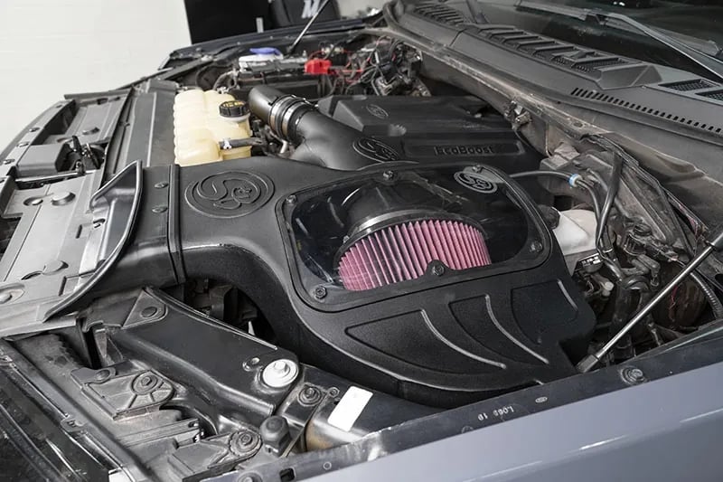The twin turbochargers on your F150’s 2.7L or 3.5L EcoBoost V6 are always hungry for more air, and S&B’s complete Cold Air Intake Kit helps to deliver by freeing up some of the restrictions present in your F150’s factory intake system. The S&B Cold Air Intake features a more efficient filter, air box assembly, and inlet tubing that all work together to give your truck’s turbochargers all the air they need to squeeze out some extra horsepower, torque, throttle response, and fuel economy. Like all of S&B’s products, their 2.7L & 3.5L EcoBoost cold air intake kits is made out of high-quality materials that will give your truck years of excellent performance and function. The S&B Cold Air Intake kit drops right in place of your stock intake system and doesn’t require tuning for proper function.