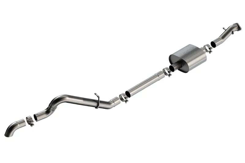 The 2021-2023 Bronco 2.7L S-Type Climber Cat-Back features a high-clearance climber design with a turn down exhaust tip. Each of the components of this exhaust system is constructed form durable, T-304 stainless steel. This strong construction ensures that your cat-back will be more resilient than the factory exhaust on your 2021-2023 Ford Bronco 2.7L. There is an option for incorporating a muffler to further control the sounds. With this exhaust system on your Bronco 2.7L build will see impeccable performance improvement out of your exhaust system. The cat-back is precisely fit to the layout of your Bronco 2.7L with CNC manufacturing. All of Borla’s exhaust systems are Made in the USA to ensure the highest quality design and materials are used. Once you have this cat-back on your Bronco, you guaranteed to have it for a long time to come with the coverage of Borla’s Million-Mile warranty. The best part of this cat-back is the easy installation. It is a simple bolt-on installation that requires no additional drilling or materials.