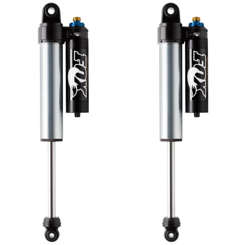 Fox used their extensive off-road racing knowledge and legendary dedication to quality to get you a set of off-road rear shocks that can go anywhere and handle any challenge you have in mind for your aggressive Tacoma build. The shocks are built around a huge 2.5″ diameter bore zinc plated steel body with 6061-T6 billet aluminum components to greatly aid in heat dissipation. The remote external reservoirs on each shock further reduce heat by greatly increasing oil capacity and allowing oil to cool away from the shock itself. Each shock features a 7/8″ chrome plated steel shaft and a high-flow, race-inspired piston that provide excellent levels of strength and reliability. The shocks are each specifically valved for your truck to maximize its off-road performance. The shocks come standard with CNC machined 6061-T6 billet aluminum mounting points to keep them held fast to your truck.