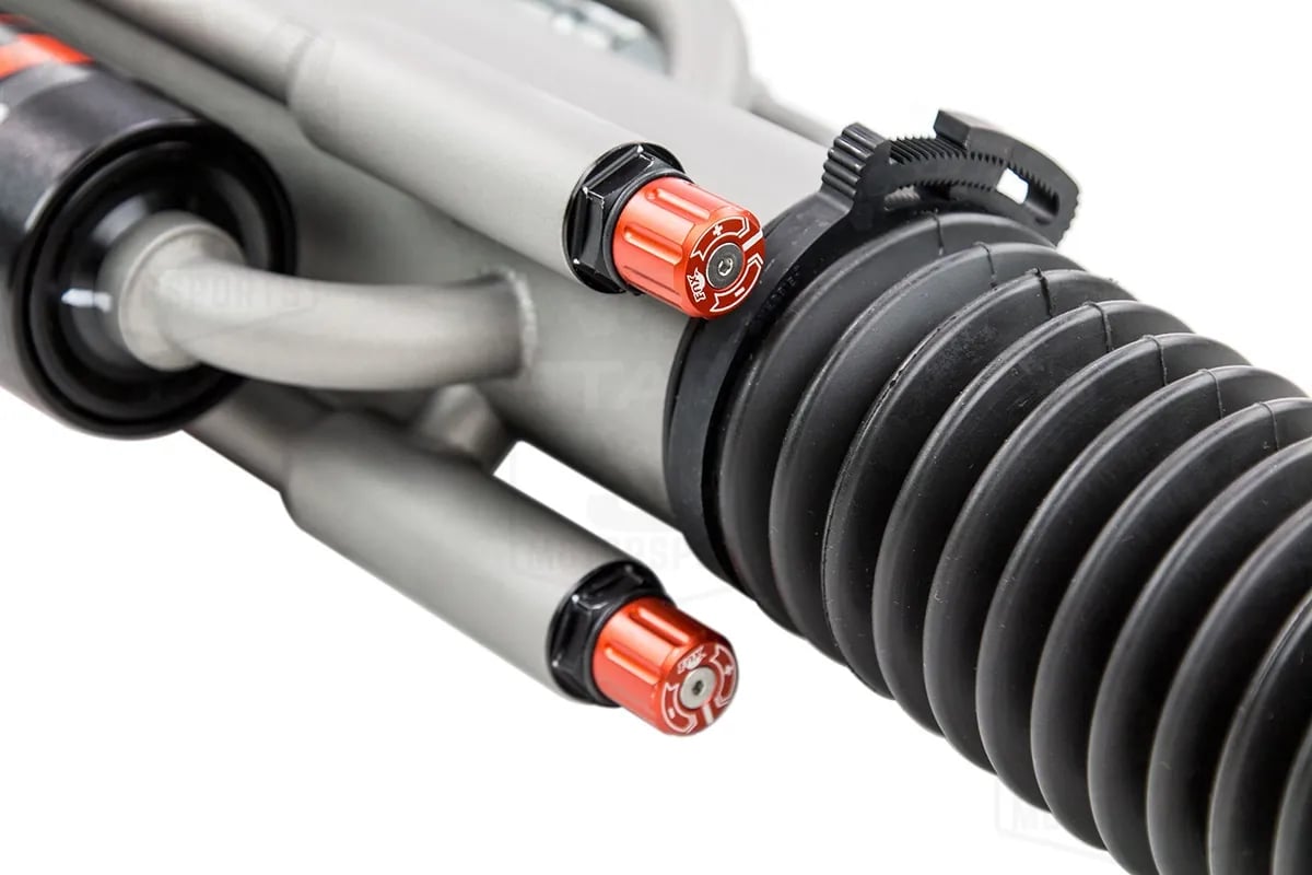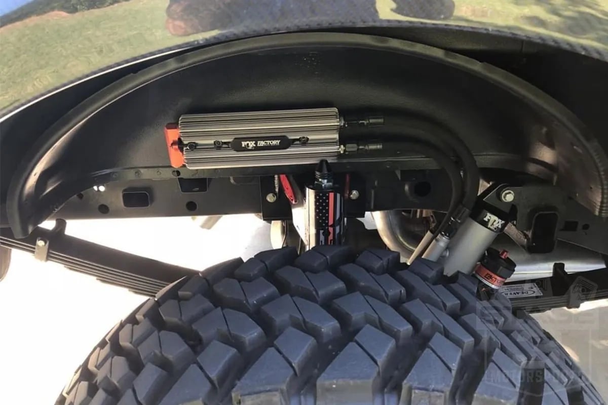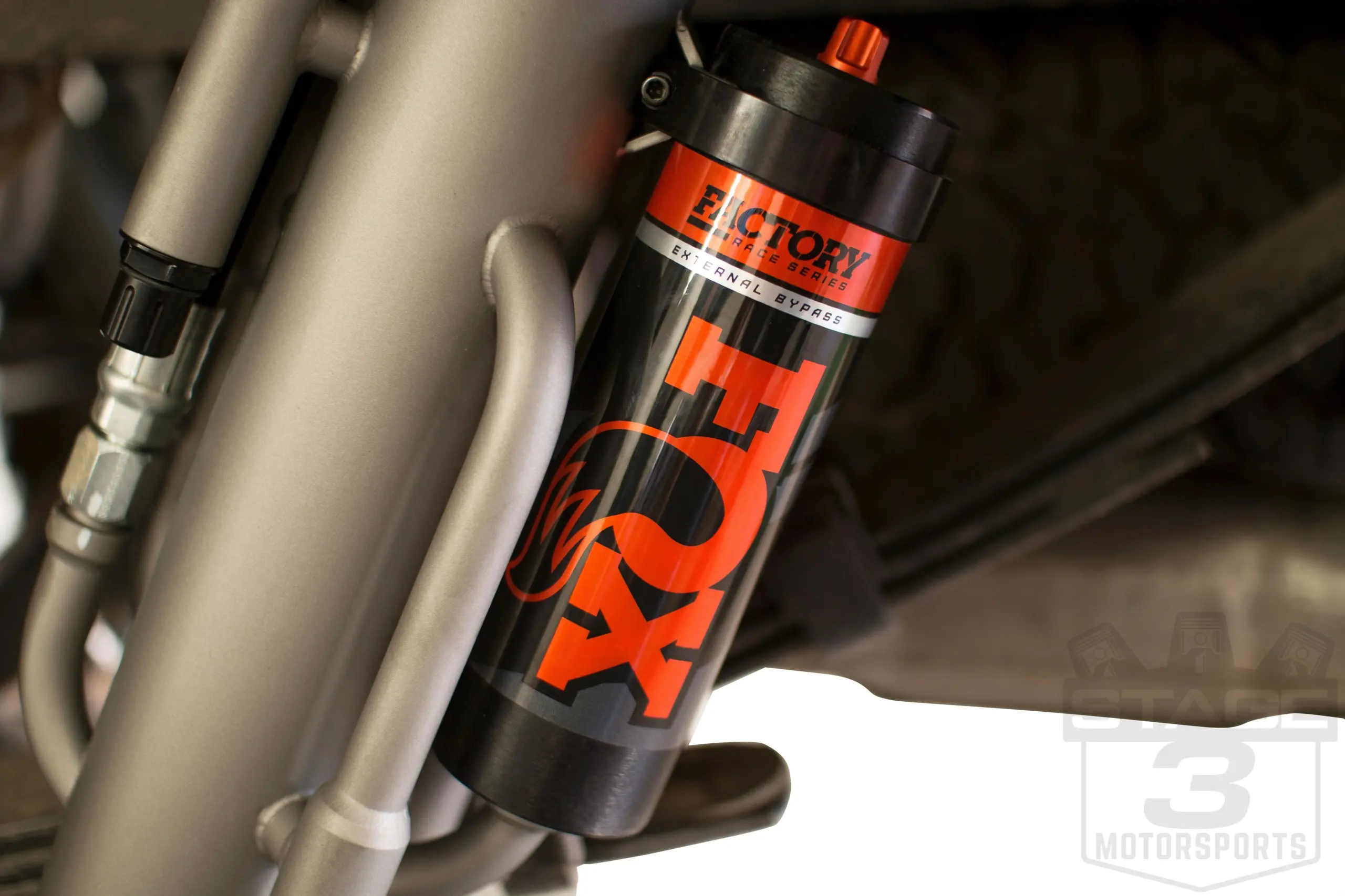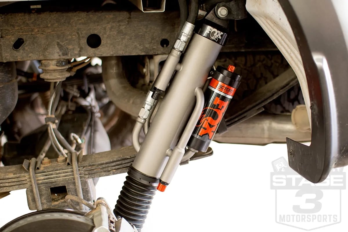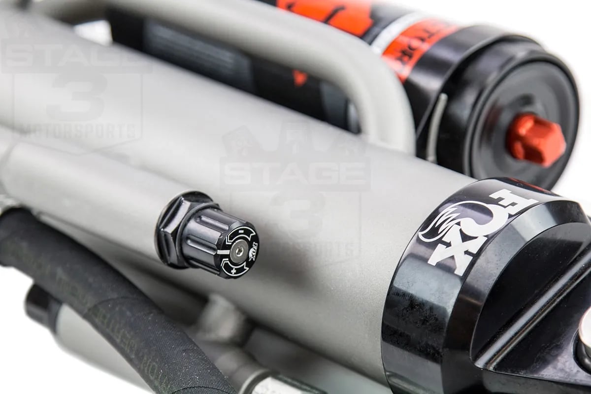 We knew it was going to be hard to top the 3.0 Rear Shocks that came on the 2017-2018 Raptors from the factory, but Fox has managed to do it with their 3.0 Factory Series Rear Shocks that feature an external bypass design and recirculating remote reservoirs with a finned design to promote awesome levels of cooling so that your 2017-2018 Raptor never suffers from fade, no matter how hard you push it off-road. The Fox 3.0 Bypass Recirculating Reservoir rear shocks can even handle 0-1″ of extra ride height, allowing you to install larger blocks or +1 leaf packs without issues. The 3.0 shock’s external bypass system is even fitted with Fox’s Quick Adjust Bypass (QAB) system that allows you to adjust oil flow through the bypass tubes to perfectly dial in your Raptor’s ride and performance. If you thought the Raptor’s suspension performance couldn’t get any better, then Fox 3.0 Factory Series Rear Shocks are here to prove you wrong.