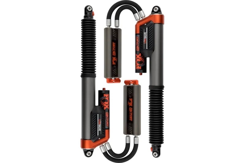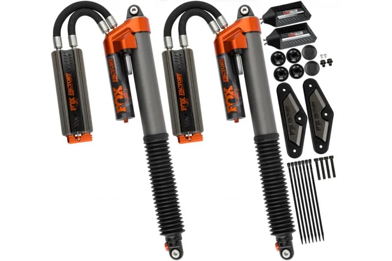 While there’s more than a few rear shock options out there for the 2019-2020 Raptors, only one keeps your OEM Live Valve System while improving your Raptor’s handling and off-road performance. The Fox 3.0 Factory Race Series Bypass Live Valve Rear Shocks offer a big improvement in damping and handling performance over the factory Fox 3.0 rear shocks, but also maintain the functionality of your Raptor’s stock Live Valve System with a plug-and-play fitting on the remote-mounted reservoir that allows the semi-active damping of the Live Valve System to work with these shocks. The remote reservoirs themselves feature a finned design that gives them excellent cooling capability and helps keep fade minimal while you’re rocketing around off-road. The shocks are designed to handle up to 1″ of rear lift and feature Fox’s QS3 compression and rebound adjustment system that lets you dial in the shock’s firmness perfectly for your application. The 3.0 Race Series Shocks drop right into place of your factory 3.0 shocks and hook right into your Live Valve System without any custom wiring.
