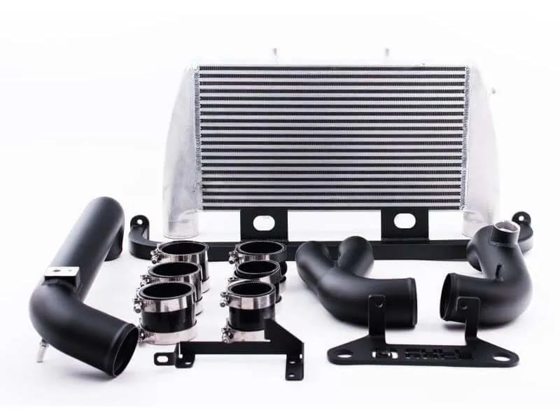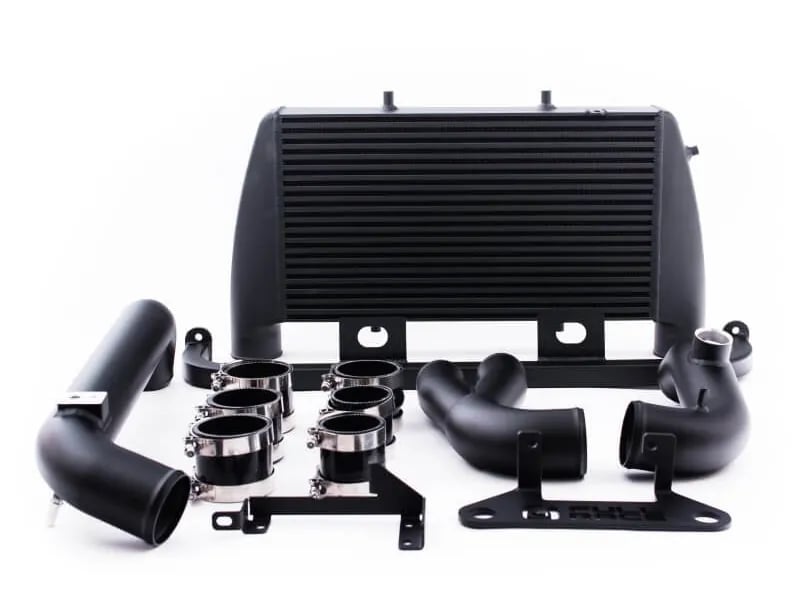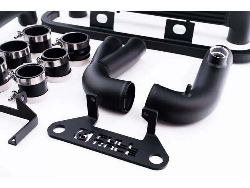 Each of these powerful EcoBoost intercoolers are made out of high-quality aluminum and are each TIG-welded by hand by the experts over at Full Race to ensure perfect fitment and function. The Gen 2 intercooler comes with high-quality and highly efficient intercooler core design that cools inbound charge air much more effectively than stock and doesn’t suffer from the same condensation issues that plague the OEM intercoolers. Full Race throws in all the necessary hardware for the installation of their intercooler system, including the intercooler itself, a complete set of charge piping, a horn relocation bracket, and high-quality couplers and clamps.