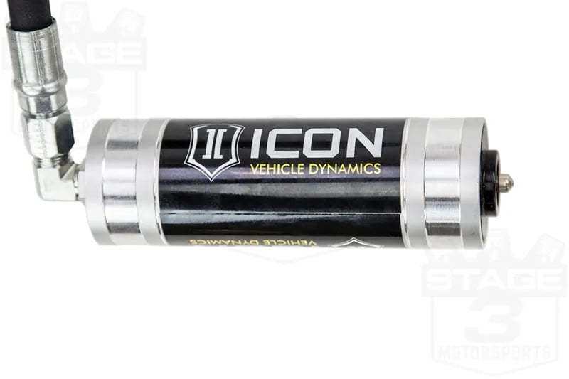 The ICON 2.5 Coilovers were designed from the ground up to provide your 2015-2020 F150 a huge improvement in off-road performance over your F150’s stock hardware. Each one of these coilovers features a 2.5″ diameter shock body that allows for a huge increase in oil capacity over your stock struts. The shock bodies are made out of high-quality aluminum which helps make heat dissipation more effective over stock, even in extreme off-road applications. The coilovers are wrapped up in an ICON engineered Eibach coilover spring that has improved response and less bounce than the factory spring without overly effecting your street ride quality. The coilovers have upper and lower mounts and spring perches made out of CNC machined 6061 billet aluminum that come standard with a black anodized finish for a great look and corrosion resistance. The remote reservoirs mount onto your truck far away from the coilover itself and come with all the hose they need. Each reservoir greatly increases oil capacity and improves cooling even further over the aluminum shock body, making them perfect for aggressive applications. Each coilover is designed as a direct bolt-on replacement for stock and comes with installation instructions and hardware.