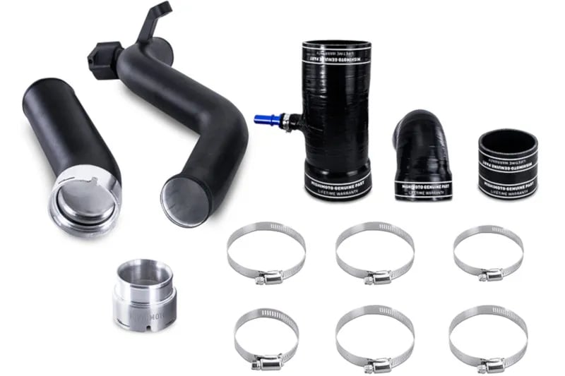 The Mishimoto Ranger Intercooler pipe kit features high-quality components that give your truck a great fit to go along with a bump in performance. Mishimoto’s manufactures the tubing itself out of mandrel-bent aluminum tubing that is both larger than stock and features smoother bends to help reduce restrictions. The hot-side tubing features 26.4% more volume than stock and improves flow by up to 25.6%. The cold-side tubing features 13.7% more volume than stock and improves flow by up to 16.6%. The tubes are topped off with a Winkle Black powder coat finish that gives them a clean look under your Ranger’s hood. The boots included in this kit are made using Mishimoto’s high-quality silicone boots with DuraCore™ technology that provides excellent resistance to heat, pressure, fuel, and oils. The Intercooler Pipe and Boot Kit comes with high-torque worm gear clamps and all the other hardware required for installation. Each kit is backed by a Mishimoto limited lifetime warranty.