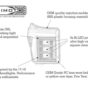 These Morimoto XD Headlights offer a plug and play install for an instant upgrade to the grill of your truck. Installation of these headlights just involves utilizing the specialized wiring harness that comes with the headlights. This product is made light weight, with durable PPS plastic and aluminum that helps prevent these from overheating. The outer lenses of each headlight are made from UV-coated poly-carbonate that helps keep the lenses looking clear. LEDs color temperature is 6500K which creates a bright white look.