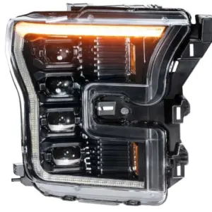 The Morimoto XB Gen 2 Headlights combine powerful LED boards with highly-specialized projector optics in a headlight system that’s loaded down with features. Morimoto builds each of their headlights around a full set of four Osram Ostar LEDs that work together to produce up to 2600 raw lumens per headlight at a pure white 5500K color temperatures. The huge power of the LEDs is harnessed by Morimoto’s Kuria Optics that generate a clear, crisp beam pattern with excellent range with a distinct cutoff that keeps the headlights from blinding other drivers. The projectors themselves have a revised design with a noticeable “eyelid” styled after the newer Expeditions. The LED outline taps directly into your F150’s fuse box using the included wiring harness to give your truck a true DRL function instead of being tired into your parking lights like most other headlights. The amber sequential turn signal scans from the inboard of the headlight to the outboard when you activate your turn signals or flashers for a great look. The polycarbonate lenses are completely clear to allow the headlights to shine as much as possible. The Morimoto XB Headlights are drop-in replacements for the stock headlights and come with a complete set of wiring harnesses and instructions. These headlights are DOT and SAE approved for street use in the continental United States. Morimoto backs their Gen 2 XB headlights with a 5-year limited warranty.