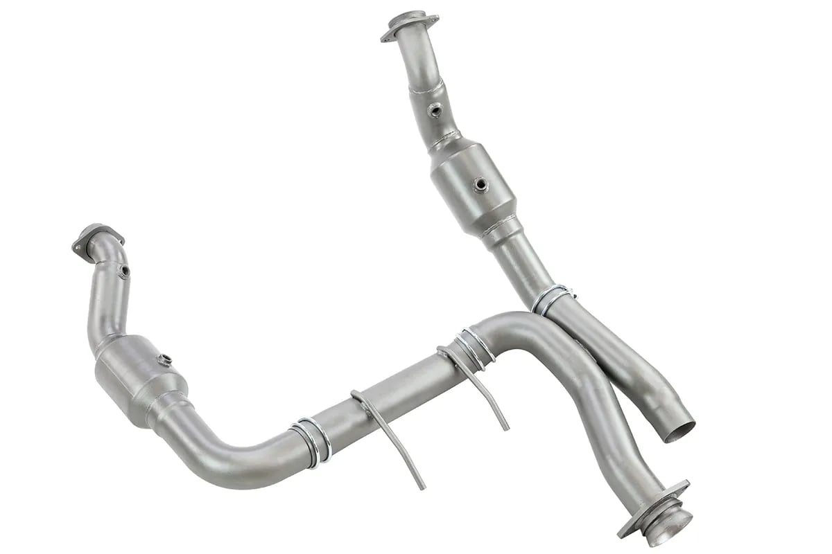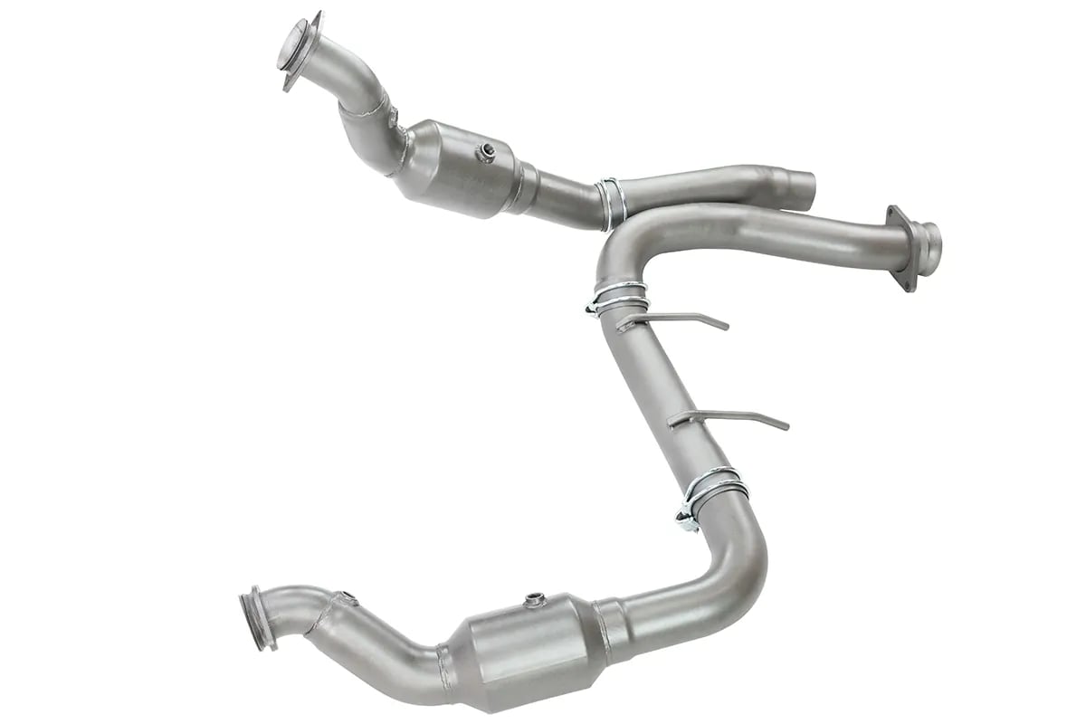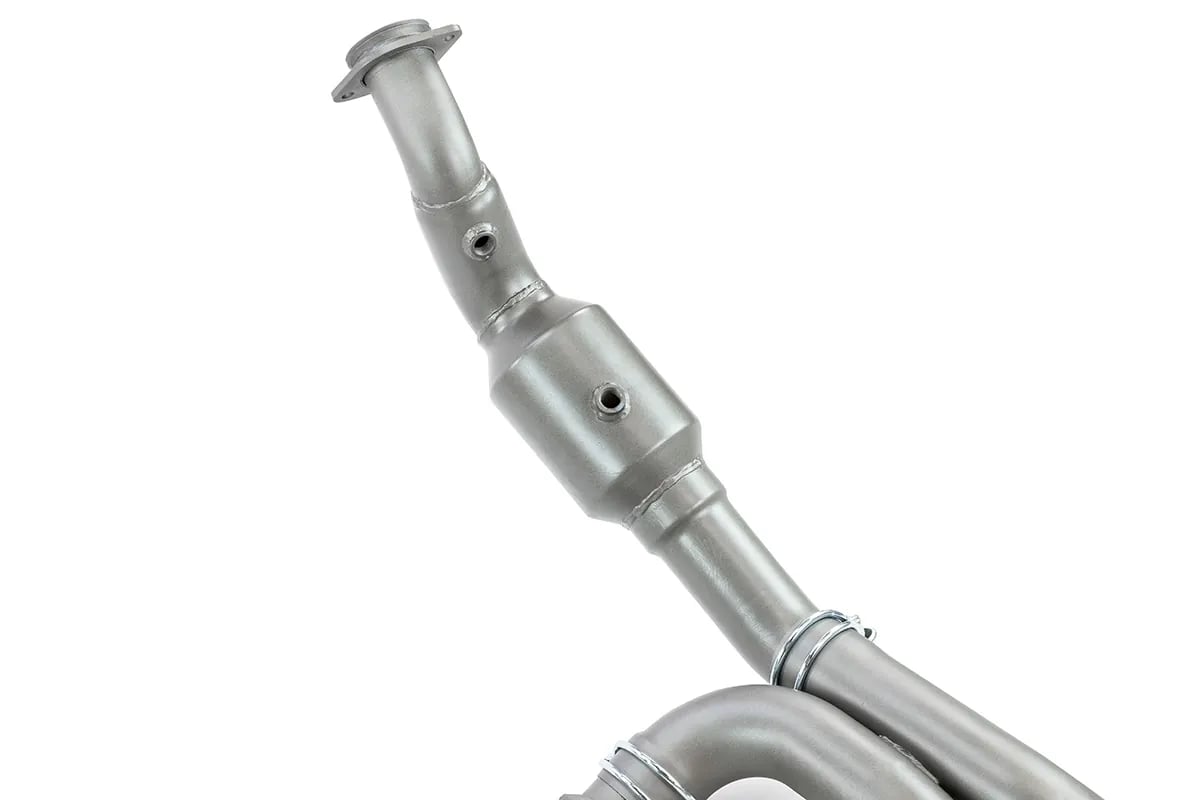 SPD’s Catted Downpipes were carefully designed to improve your Raptor’s performance, all while giving you long-term reliability and emissions compliance. SPD’s catted downpipes are built around 3″ diameter, mandrel-bent tubing that allows for much more efficient exhaust flow with less backpressure than the stock downpipes. SPD’s catted downpipes feature catalytic converters that offer improved exhaust flow over the stock cats, but still help prevent CELs and keep your Raptor street-legal. The downpipes are made entirely out of aluminized steel that then receives a gray VHT high-temp ceramic coating to further protect them from corrosion and provide some extra heat insulation. The coating can be re-applied if damaged. SPD’s downpipes install in place of your Raptor’s factory downpipes without permanent modifications and come with all their necessary hardware.